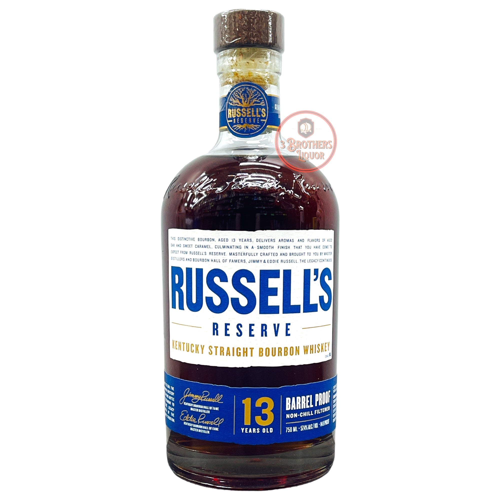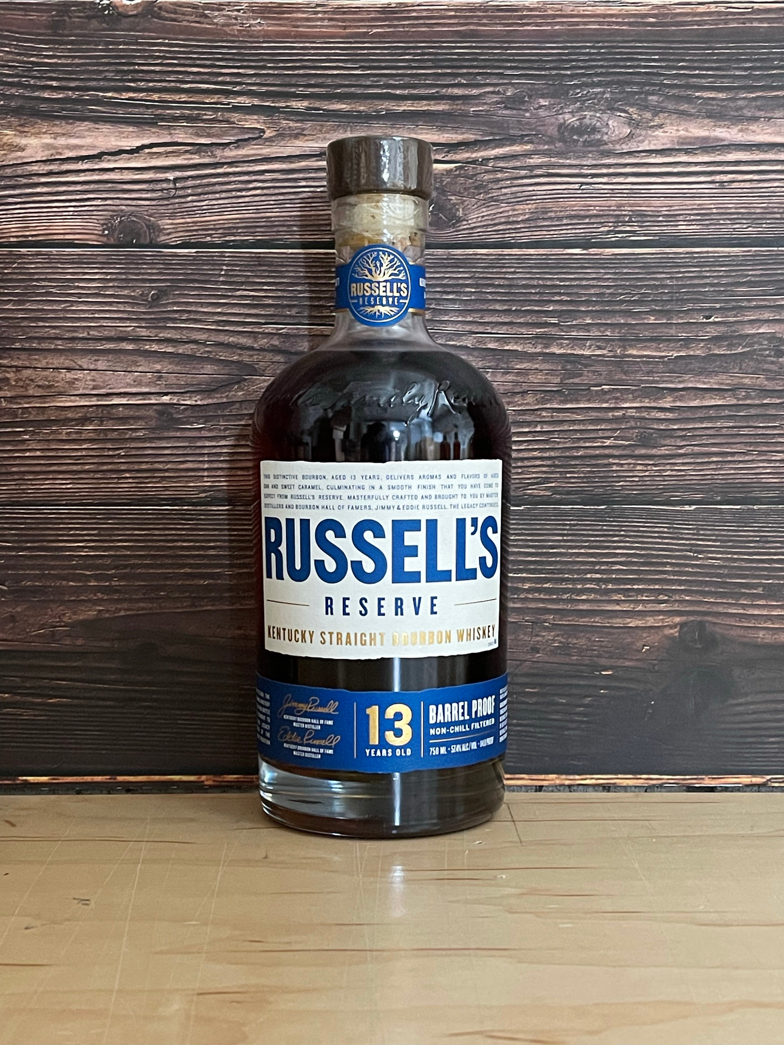 Russell’s Reserve 13 Year Old Barrel Proof Straight Bourbon Whiskey. The new Russell’s Reserve 13 Year Old is a tribute to the distillery’s heritage and the legacy pioneered by Eddie’s father, Jimmy Russell. It showcases Eddie’s talents and expertise to develop flavors through careful aging and a nose for identifying the highest quality barrels.