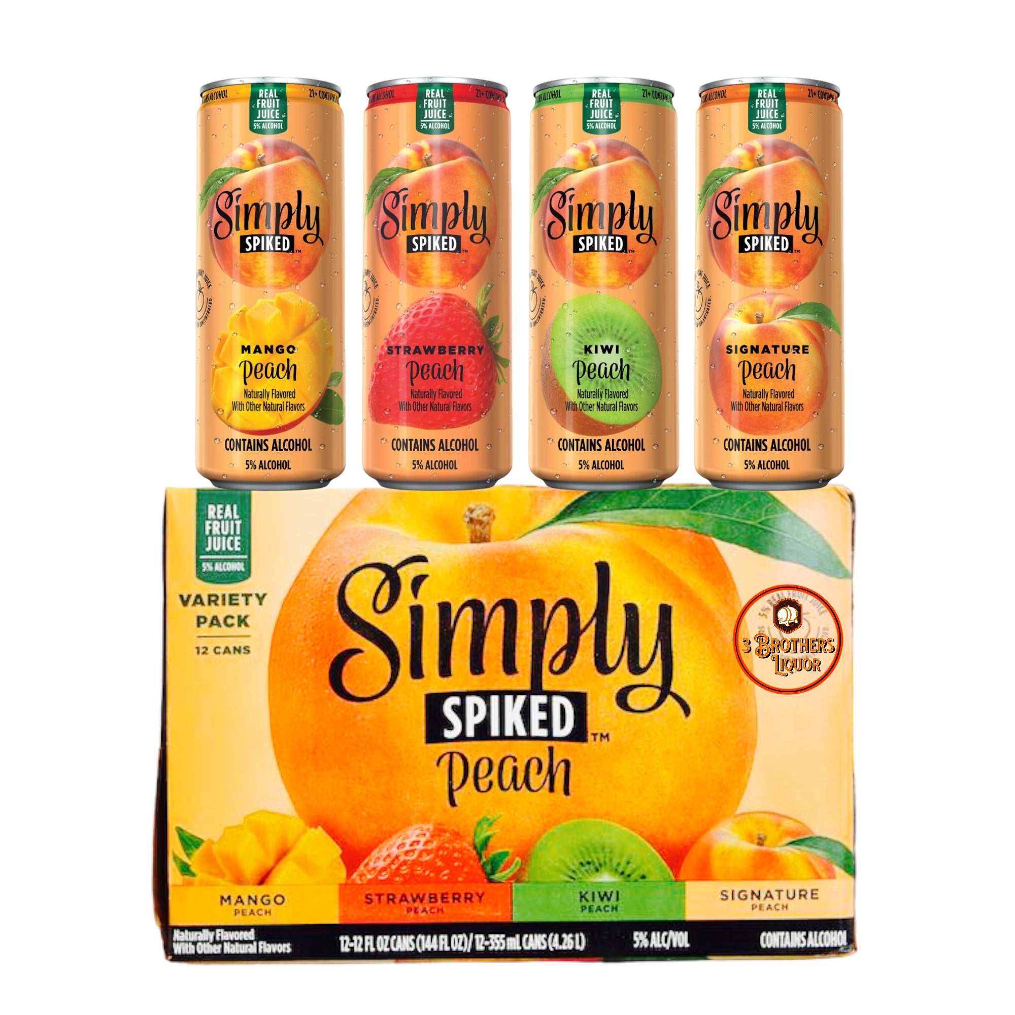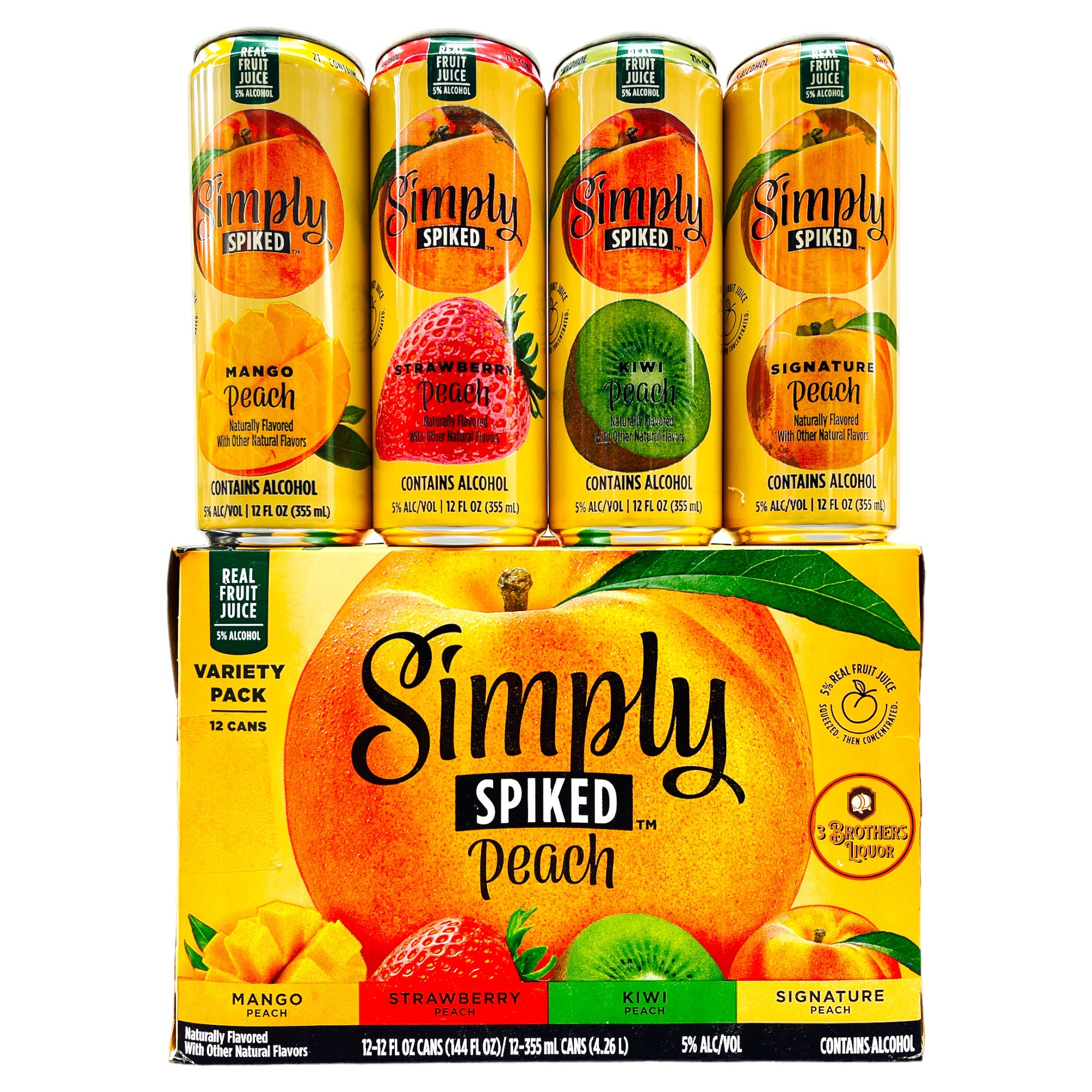 Simply Spiked Peach Variety 12 Pack 12oz Cans With Natural Flavours. It’s a big, juicy world Simply Spiked is here for it. Find out where to get yours. Simply Spiked line of bold, full-flavored alcoholic drinks made with...