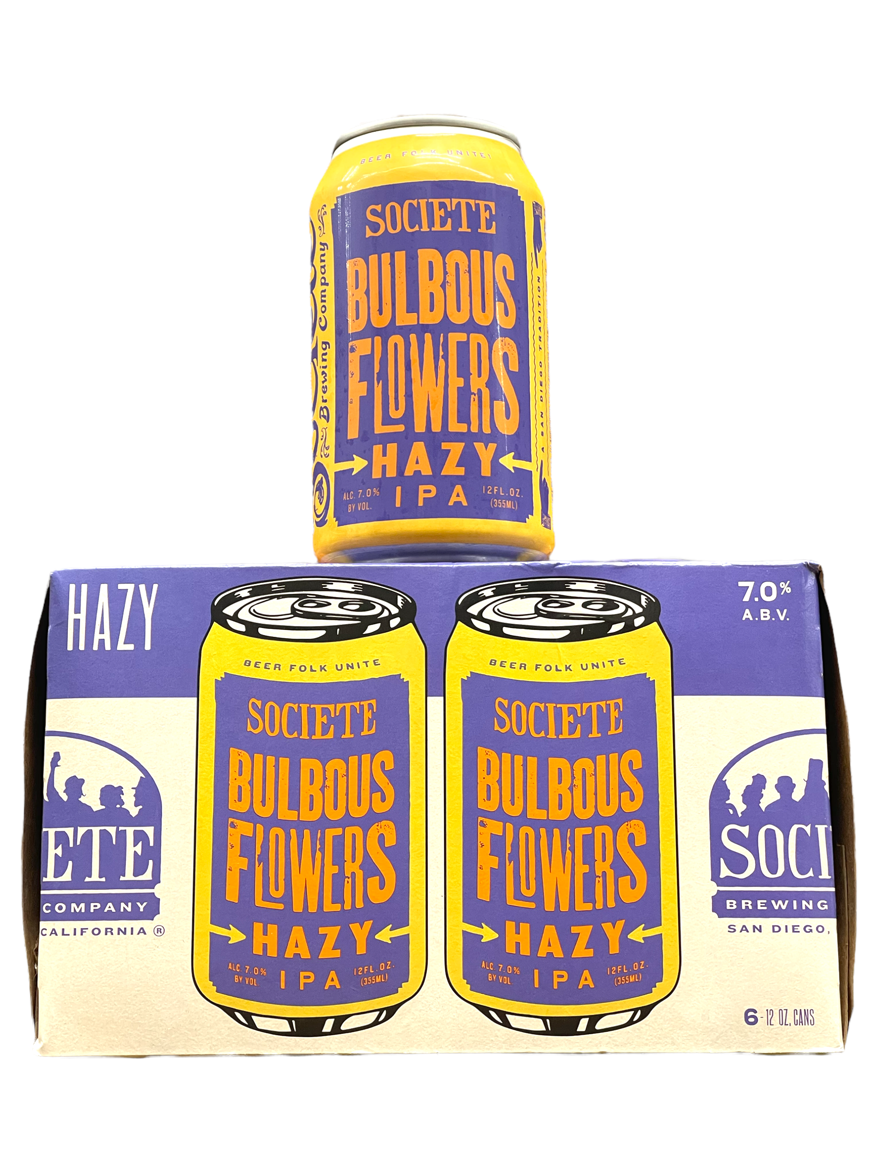 Societe Bulbous Flowers Hazy IPA (6PK 12oz Cans). Bulbous Flowers is a full bloom of hops with an unfiltered aura. It's a year-round daydream of freshly squeezed citrus.
