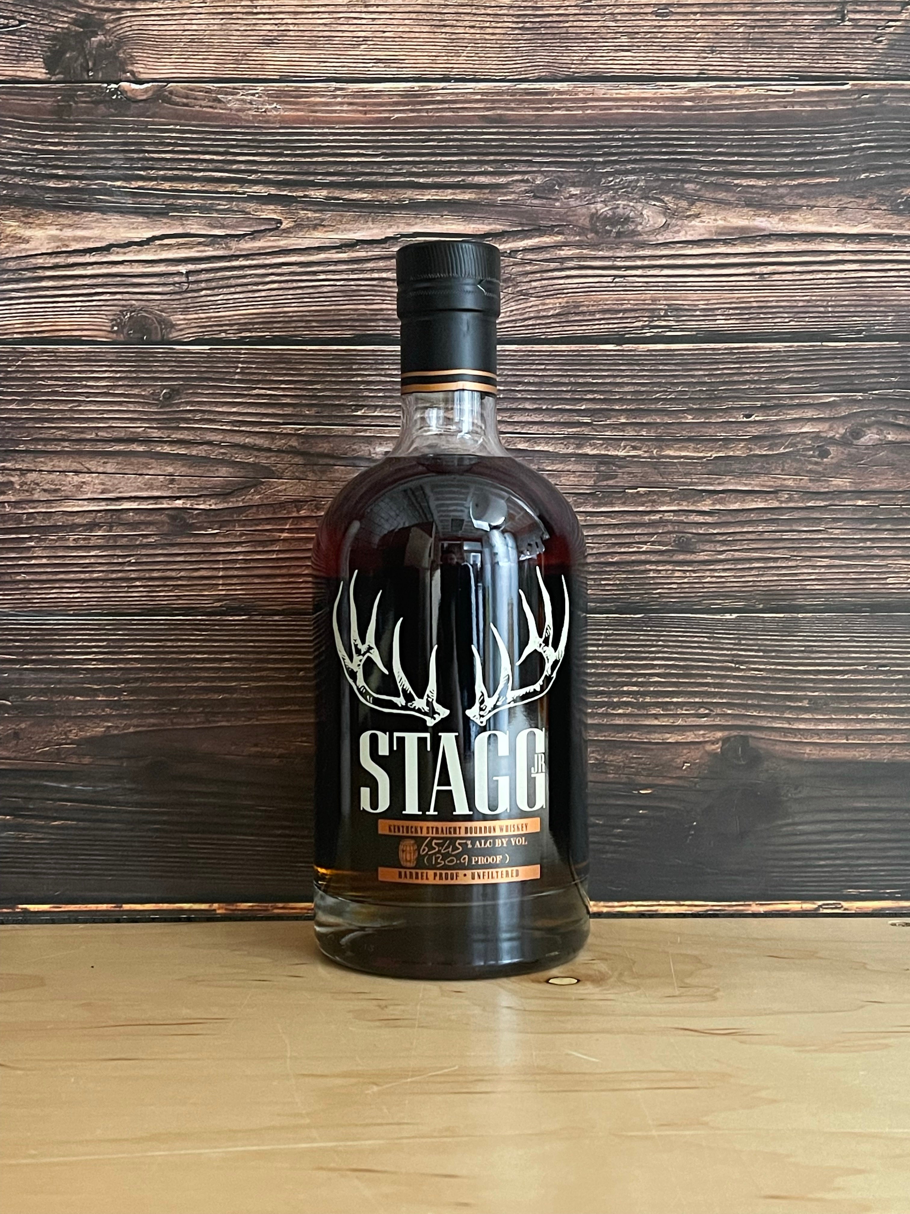 Stagg Jr Straight Bourbon Whiskey 125.9 Proof. George T. Stagg built the most dominant American distillery of the 19th century, during a time known as the Gilded Age of Bourbon. Uncut and unfiltered, this robust bourbon whiskey ages for nearly a decade and boasts the bold character that is reminiscent of the man himself.