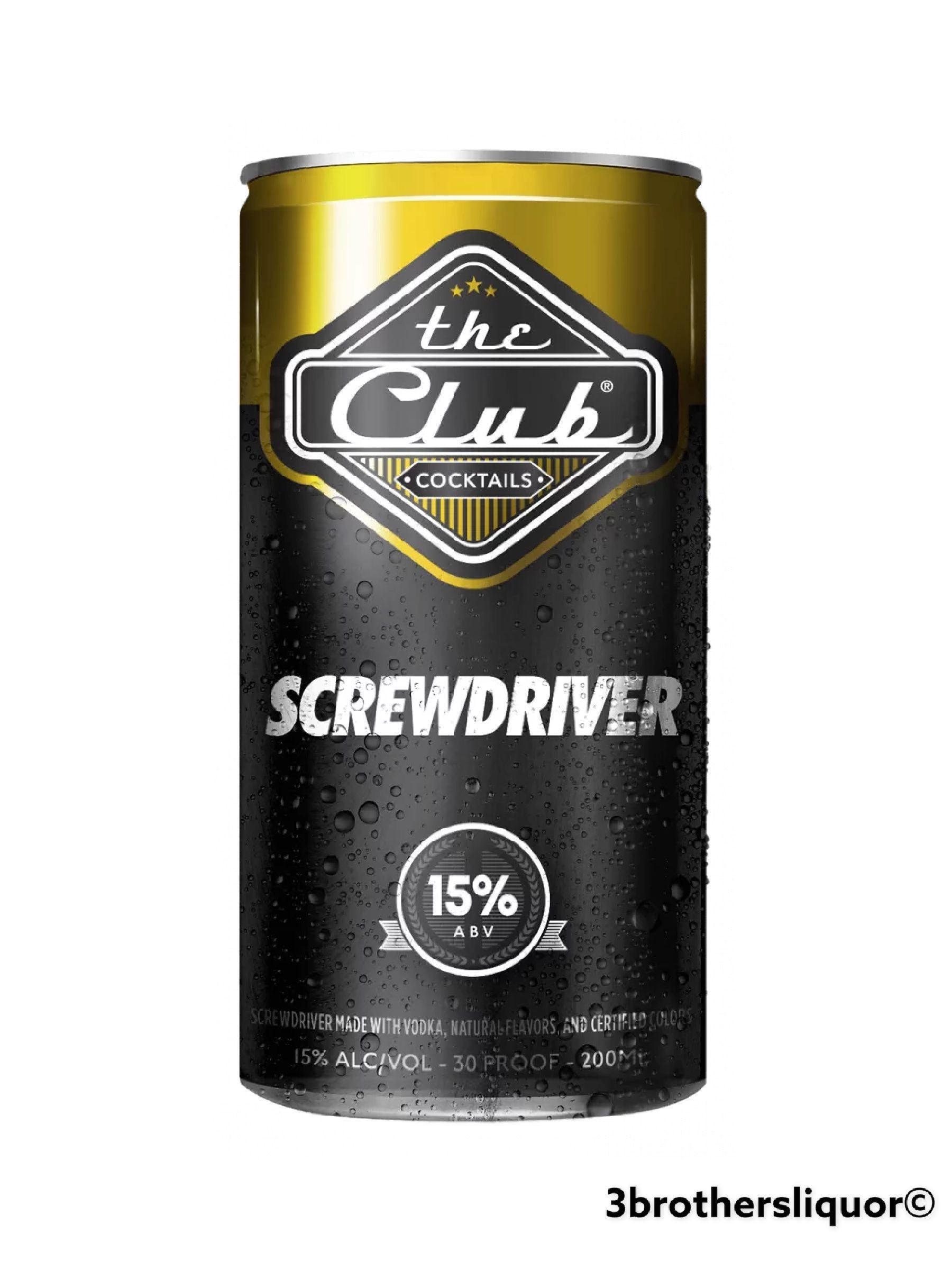 The Club Screwdriver Ready To Drink Can Cocktail. A screwdriver that doesn’t involve work. Simply crack open The Club and enjoy this vodka and orange juice classic in a can.