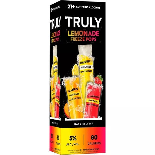 These freeze pops are a surprisingly fun way to enjoy the delicious refreshment of Truly Hard Seltzer. Each pack contains four each of our Original Lemonade, Strawberry Lemonade, and Mango Lemonade.