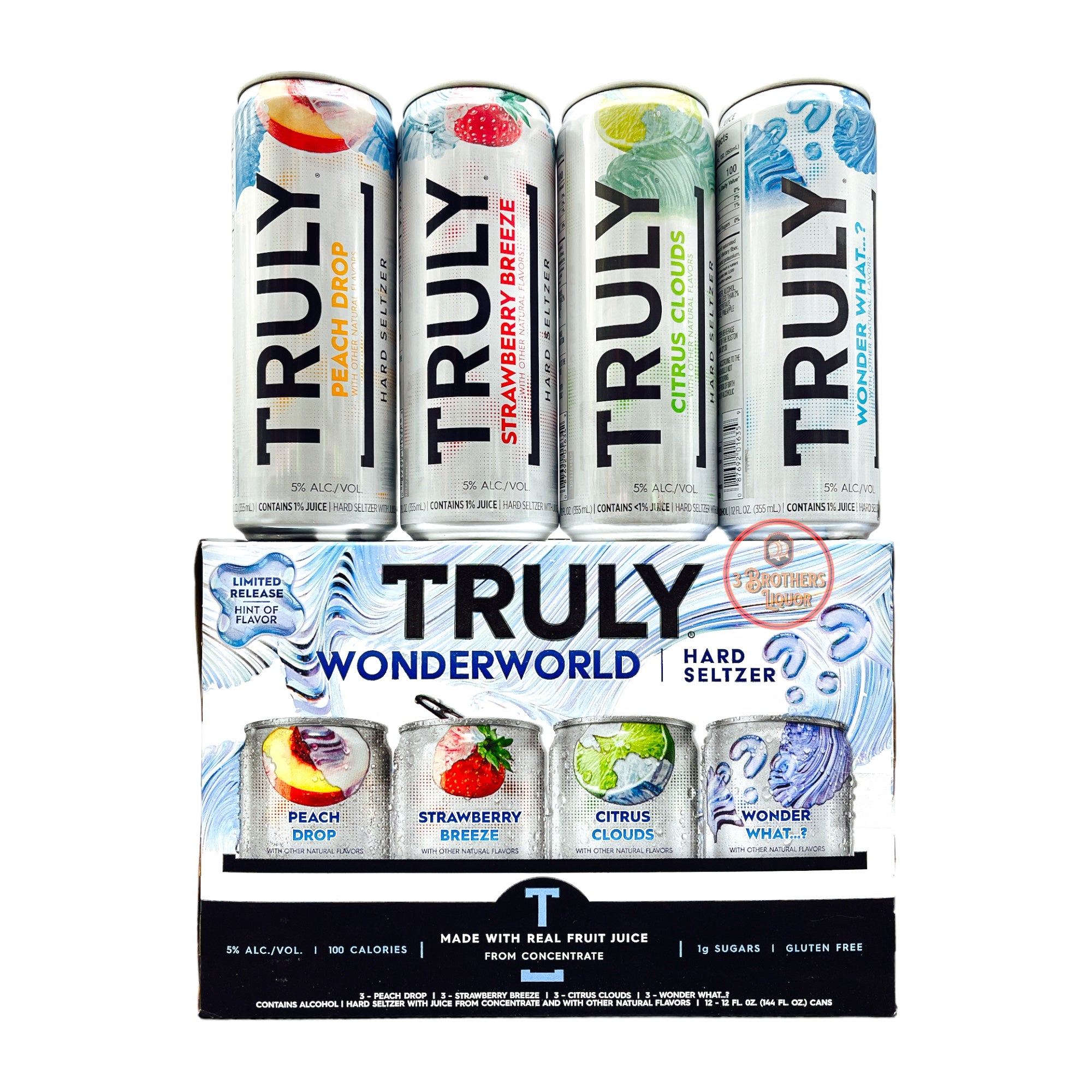 Truly Wonderworld Hard Seltzer 12Pk Variety Cans. Hard seltzer with real fruit juice from concentrate, no artificial sweeteners, just a hint of flavor · Four fresh, new flavors: Peach Drop, Strawberry Skies, ...