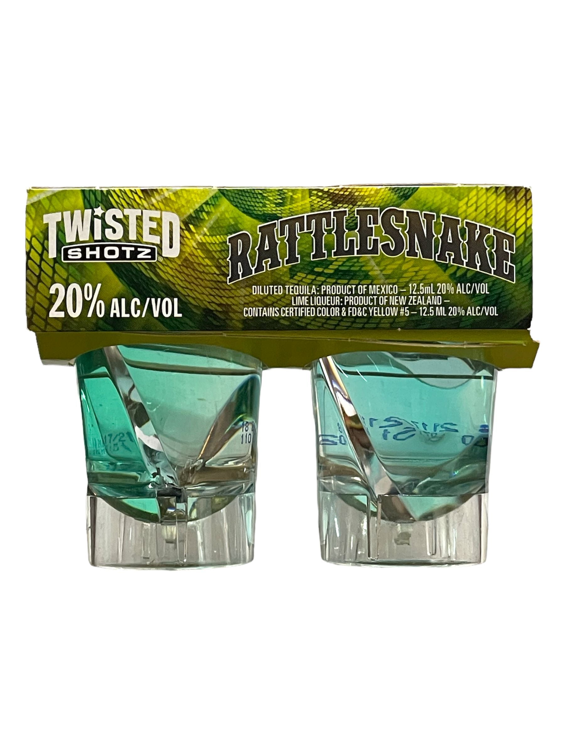 Twisted Shotz Rattlesnake Half And Half Shots (25ML x 4 Pack). Not for the faint of heart rattlesnake is truly the twist for tequila lovers. A shot of straight tequila with the lime chaser built in it’s a shot for those twisted partiers who like dares more than they like dessert. Get bitten party people! 22. 5% abv