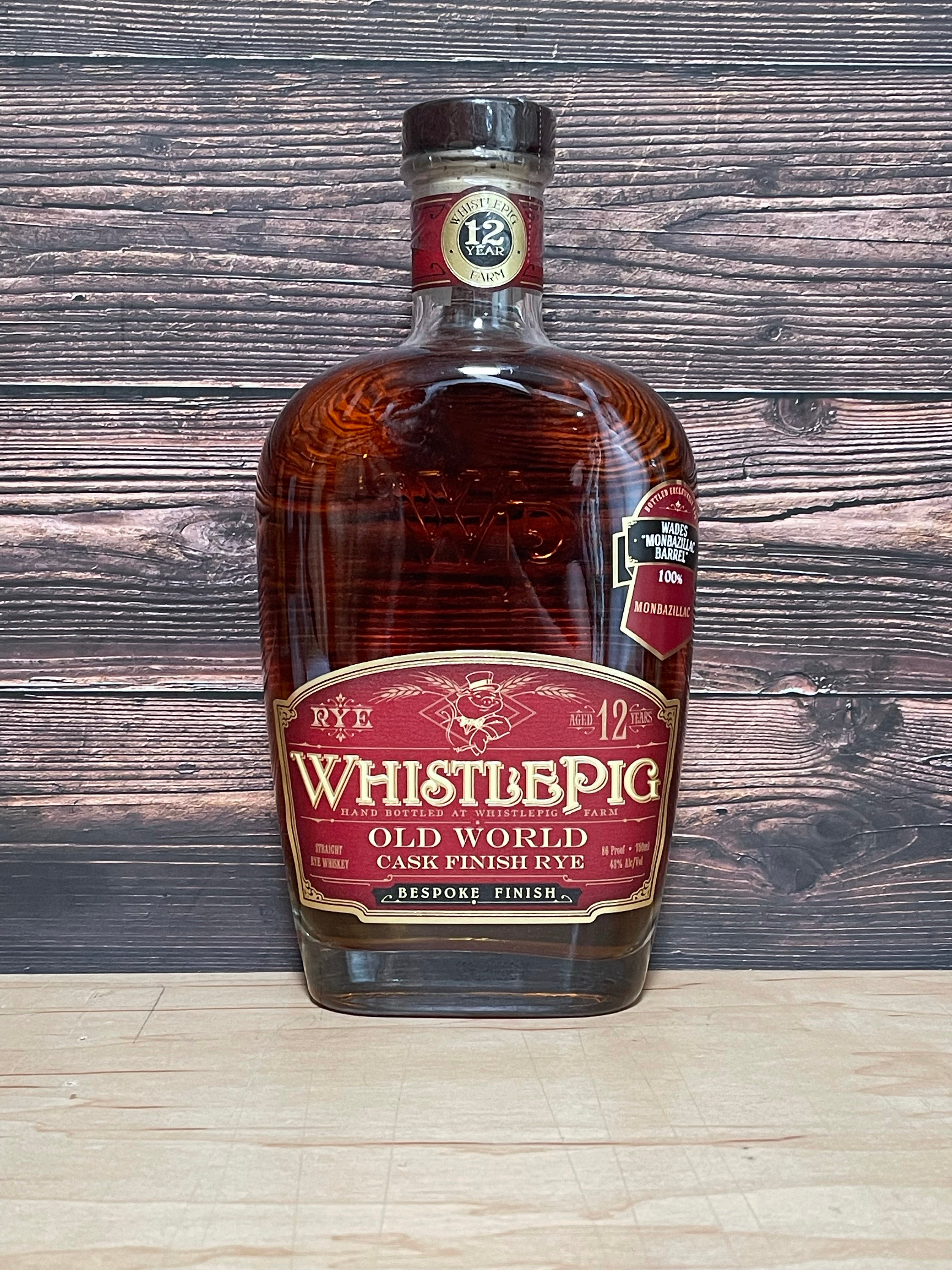 WhistlePig 12 Year Old World Cask Finish Rye Whiskey (Bespoke Finish) Rye inspired by Old World barrel-aging traditions.This 86-proof 12 year-old Rye Whiskey is a marriage of whiskeys aged in New American Oak and ingeniously finished in Port (7%,) French Sauternes (30%,) and Madeira casks (63%).