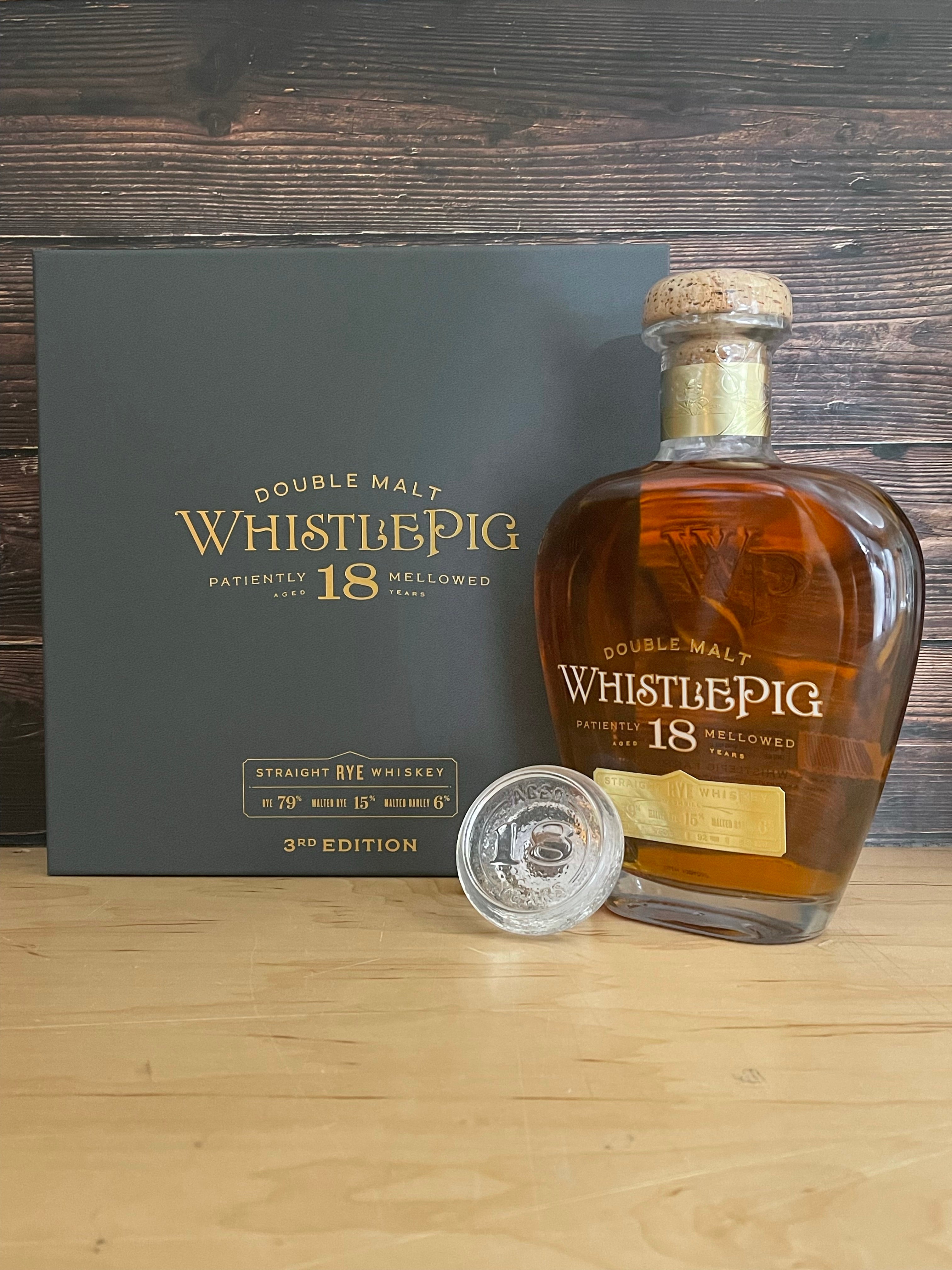 Whistlepig Aged 18 Years Straight Rye Whiskey W/ Whistlepig Bottle Stopper. A long and patiently aged whiskey is only as good as the grain it's born from. With our oldest expression to date, we’re tapping into the time-honored techniques of the farmer distillers who invented the category in America's early days. Our mash bill 79% rye, 15% malted rye and 6% malted barley creates a sipping experience that evolves on the palate from soft and supple to rich and savory. A thrilling encounter accentuated by 18 years of maturation in virgin oak.