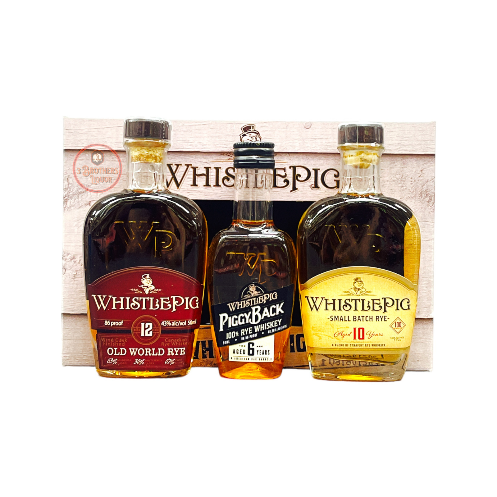 Enjoy the unique flavor of Whistlepig Piglets with this 3-pack mini shots bundle. Featuring whiskeys aged 12, 10, and 6 years, each shot is 50ml. sample them all and enjoy an exclusive experience of Whistlepig quality in each sip.