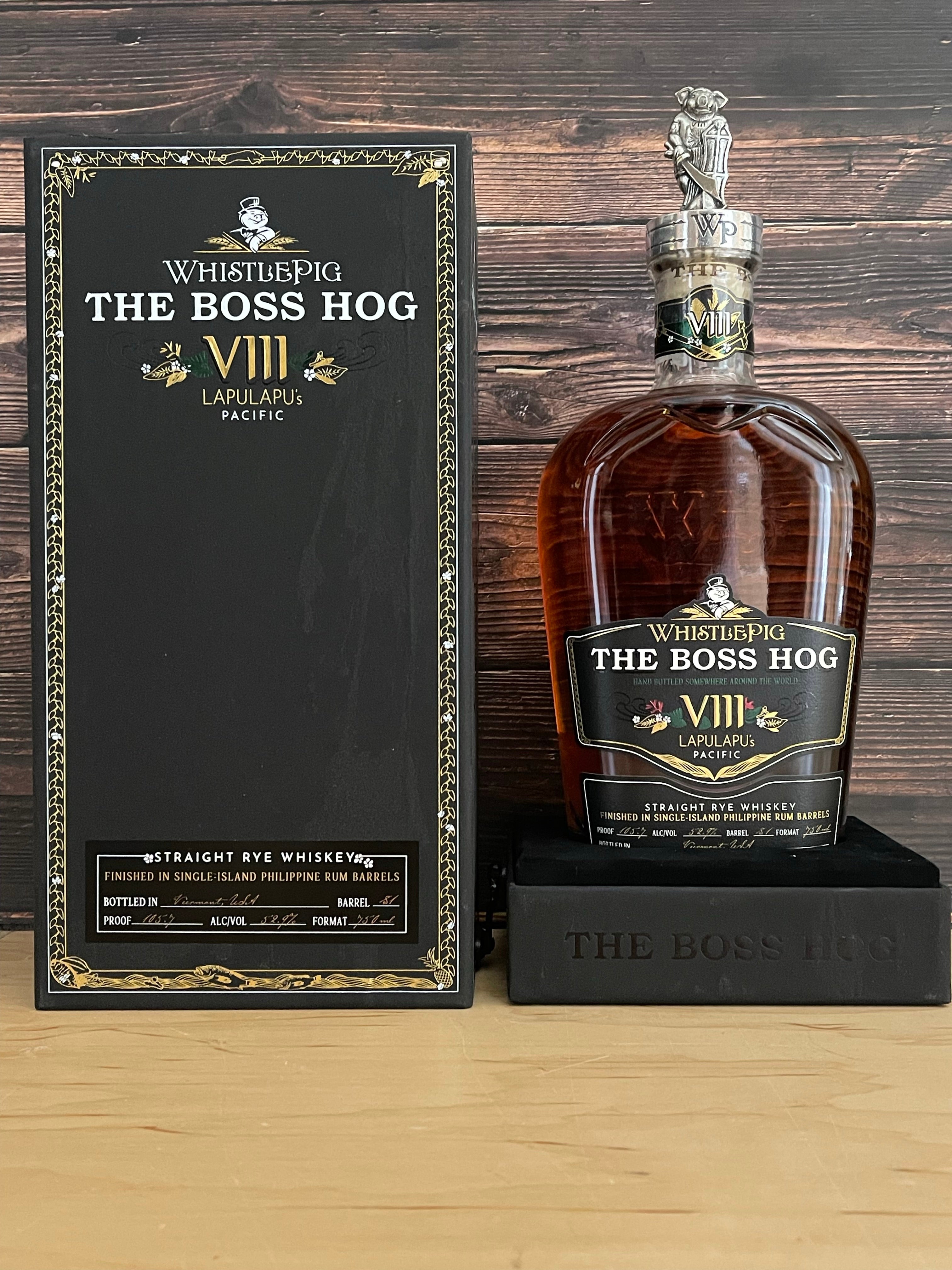 Whistlepig The Boss Hog VIII Lapulapu’s Pacific Rye Whiskey. An epic sequel to the World’s Best Rye, The Boss Hog VIII: LapuLapu’s Pacific completes our journey around the world, unfurling a chronicle as rich and bold as the whiskey itself.