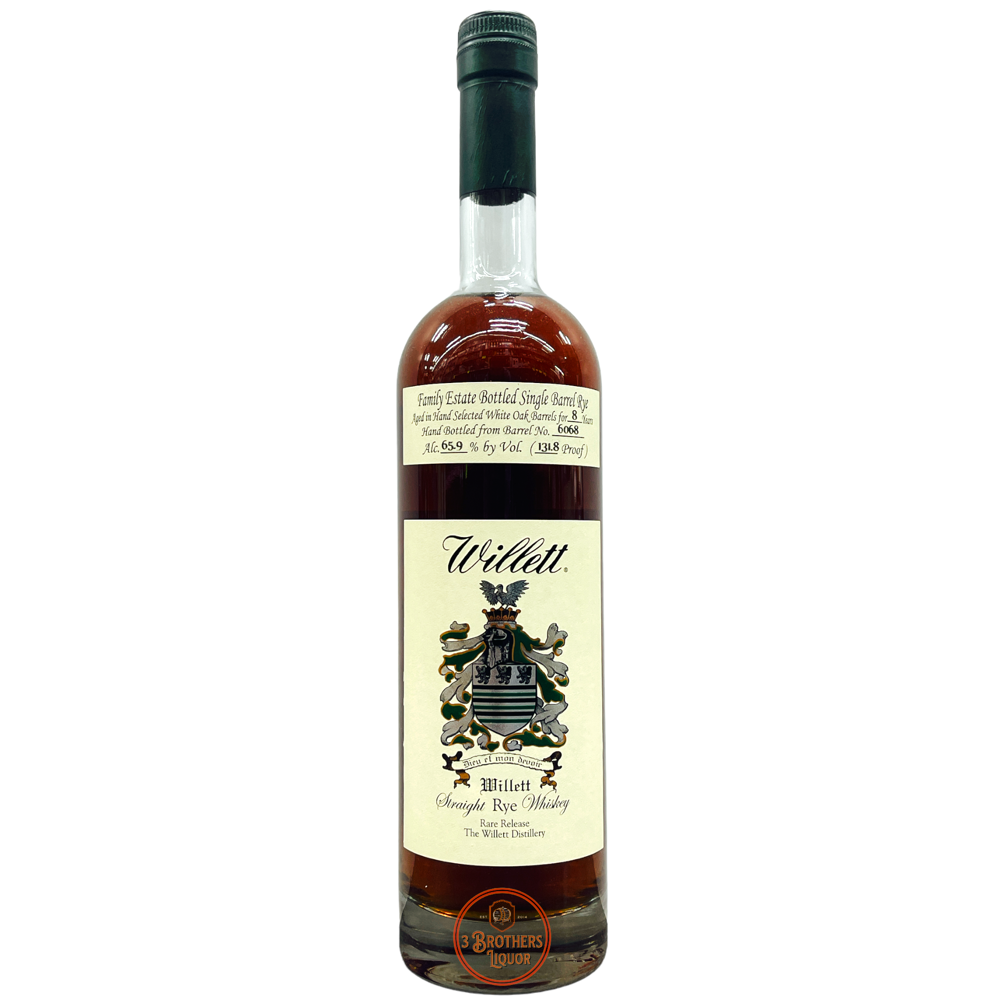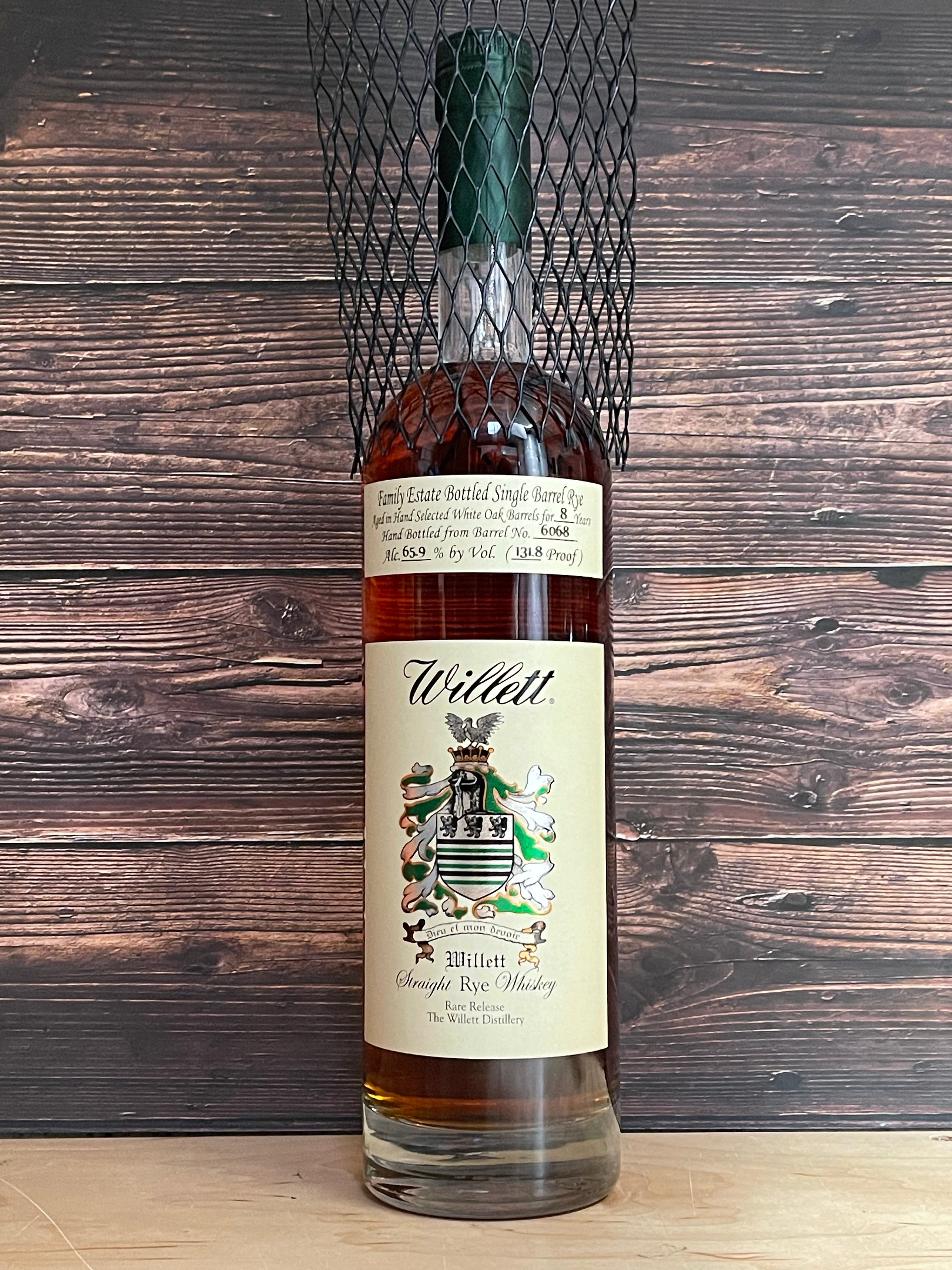 Willett Single Barrel 8yr Rye Whiskey (131.8 Proof) 2022 Release. Family estate bottled single barrel rye aged in hand selected white oak barrels for 8 years hand bottled from barrel no. 6068.